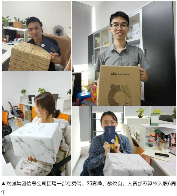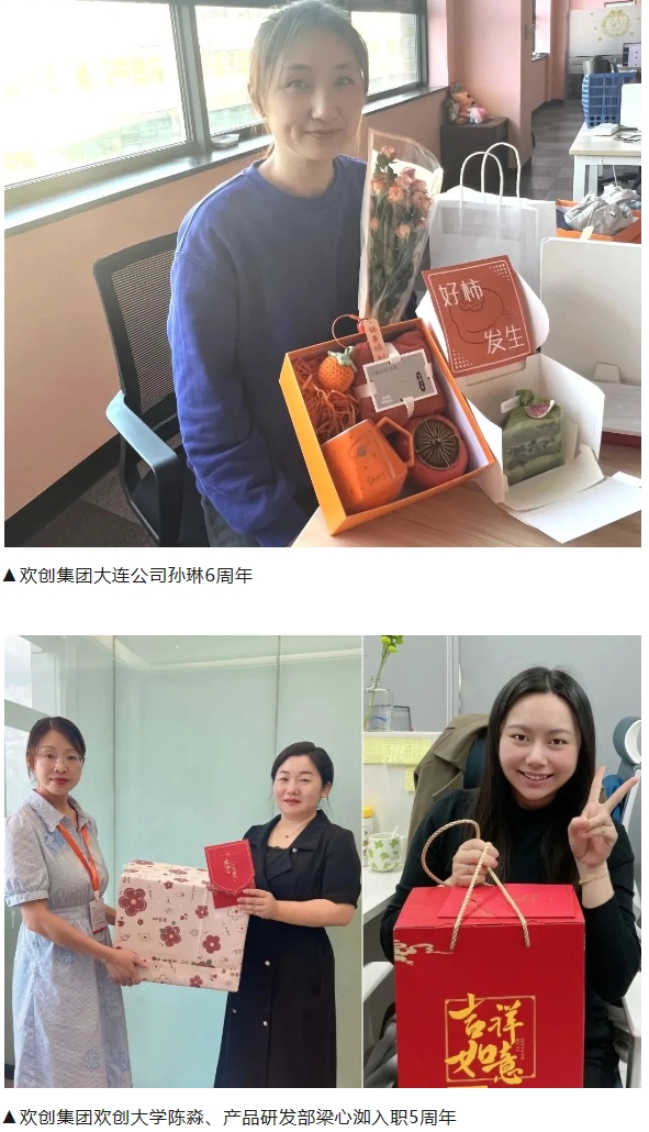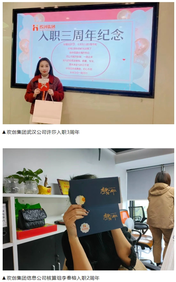 员工入职纪念日,既是员工周年日,也是公司的纪念日,需要浓浓的仪式感,欢创集团会按照每位同事的入职日对员工进行入职纪念日关怀活动,为满周年的员工送上真诚的祝福及定制的纪念品,以表示对员工伙伴的慰问与感谢。欢创集团感恩每一位伙伴的携手同行!欢创集团因为有你们,更加欢乐,更加精彩!