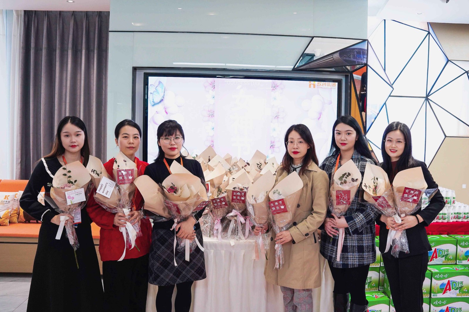 为庆祝这一特殊节日,欢创集团特别为每位女神精心准备了一份节日惊喜——一束馥郁芬芳的卡布奇诺玫瑰与一排满载童年回忆的娃哈哈饮品。卡布奇诺玫瑰以其独特的韵味和优雅的姿态,恰如其分地展现了女神们的高贵气质与坚韧精神;而娃哈哈,作为国货之光,不仅唤醒了我们心中深藏的美好回忆,更彰显了欢创集团对国货精神的深深热爱与坚定支持。