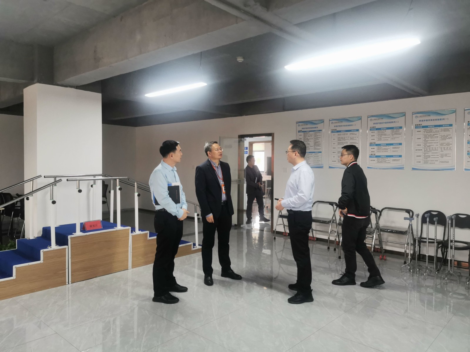 到访领导参观了广西欢创及旗下两家子公司广西欢派家庭服务有限公司、南宁市八桂管家职业技能培训学校的办公环境、理论及实训教室,并详细询问了各业务运行发展情况。